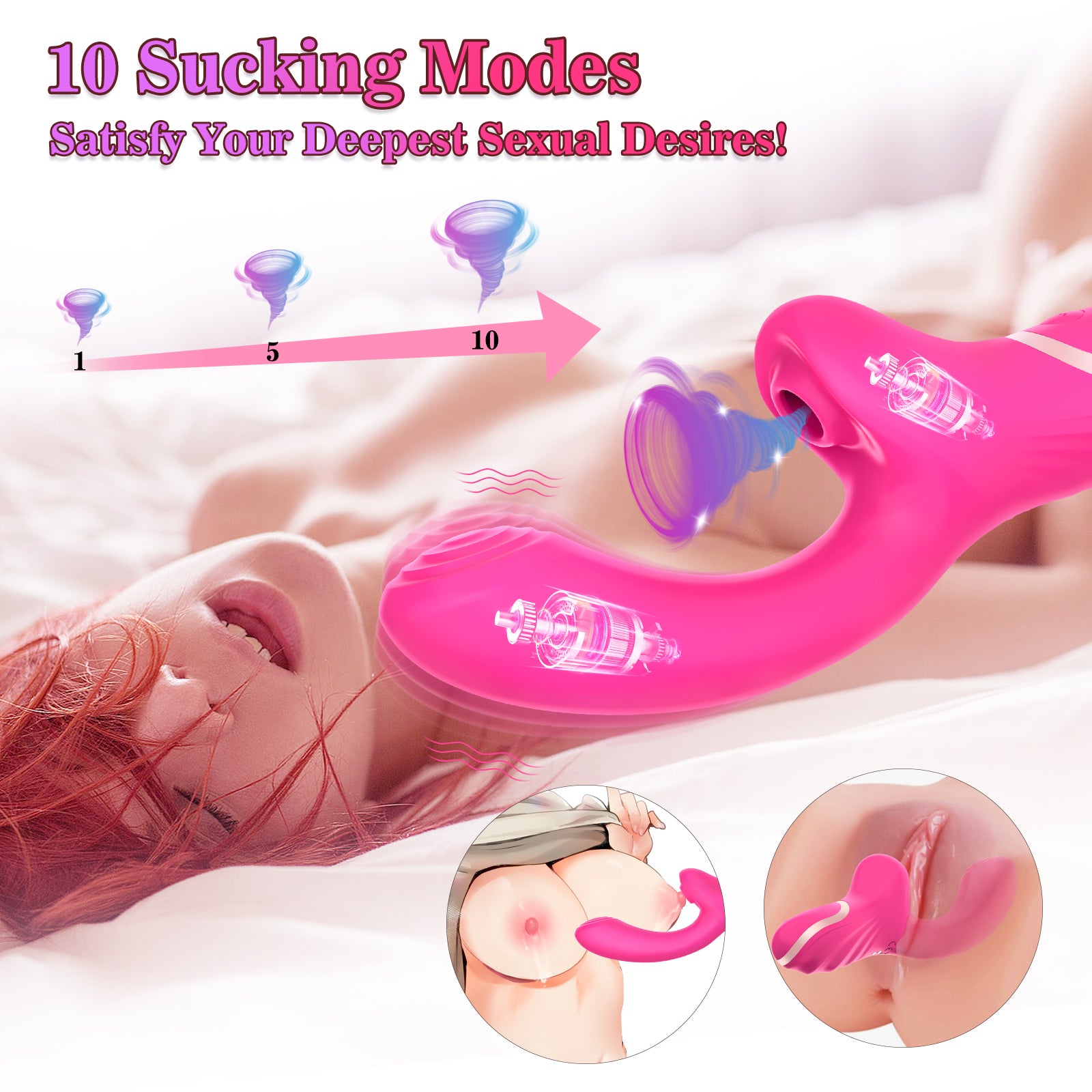 - Dual stimulation – simultaneous G-spot vibration and clitoral suction
